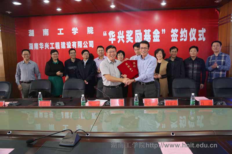 10月12日上午,我校与湖南华兴建设工程有限公司“华兴奖励基金”签约仪式在信息楼大会议室举行。校长张力、副校长陈世平、华兴公司董事长肖家元、执行董事肖波、总经理刘min参加了会议。会议由副校长陈世平主持。