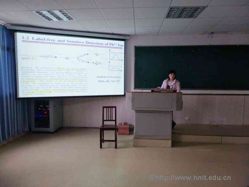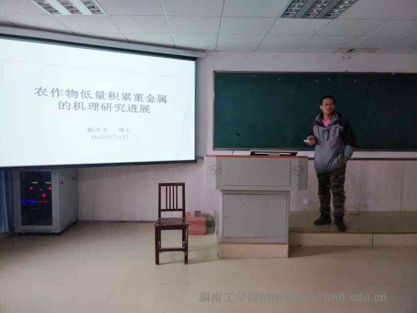 本次讲座由李坦平副院长主持,他详细介绍了三位老师的研究方向后,讲座正式开始。李坦平副院长首先作了题为《人居环境问题与建筑材料的发展》的学术报告。李院长结合自身的实践经验和研究成果,理论联系实际,针对人居环境对身体健康的影响以及建筑材料的发展趋势与进展进行了深入浅出的分析。随后,欧丽娟博士作了题为《基于金属纳米簇的生物传感新方法研究》的学术报告。欧博士结合她目前所做的课题,详细介绍了金属纳米簇在生化分析和生物传感技术领域的应用。戴洪文博士作了题为《农作物低量累积重金属的机理研究进展》的学术报告。戴博士从国家需求与科学需求、镉污染预防品种的定义、镉污染控制原理与技术等方面介绍了农作物品种间镉累积差异的机理。三位老师的精彩讲座展现了较高的学术水平,赢得了现场师生的一致好评,纷纷表示获益匪浅。