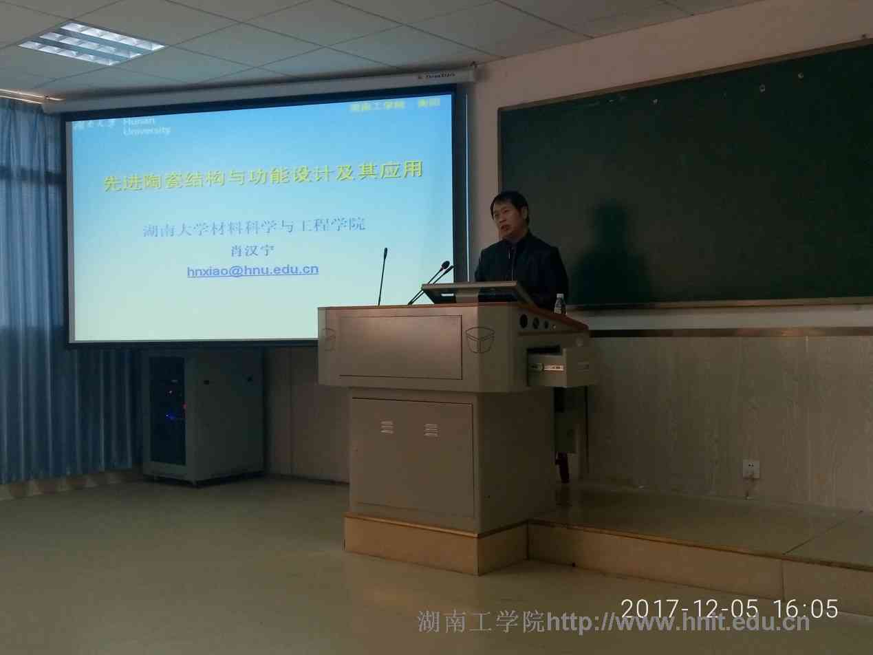 2017125日下午4点,湖南大学陶瓷研究所所长肖汉宁教授应邀在材化楼1301报告厅为大家作了一场题为“先进陶瓷结构与功能设计及其应用”的学术讲座。讲座由材料与化学工程学院李坦平副院长主持,材料与化学工程学院100多位师生参加了本次讲座。