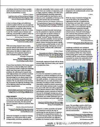 据悉,该期Science杂志以“Full speed ahead to the City on the Hill”为题,邀请曾在该杂志上发表过文章的作者就如何更好地应对城镇化这一主题阐述观点,共发表了包括美国斯坦福大学、加州大学洛杉矶分校、宾夕法尼亚大学、新加坡国立大学、英国卡迪夫大学等著名高校在内的全球31位青年科学家的评论观点。(安工学院供稿)