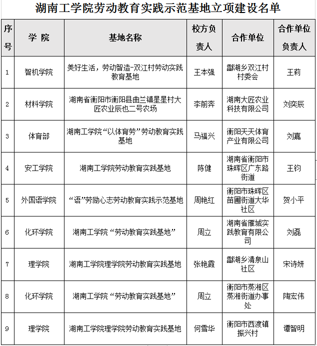 根据《关于开展金沙990线路检测劳动教育实践示范基地申报的通知》要求,经二级学院(部)申报、专家评审,拟确定《美好生活,劳动智造-双江村劳动实践教育基地》等9个基地立项建设(见附表),现予以公示。
