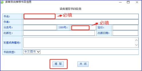2.工作人员将会及时审核荐购信息,请尽量提供详细准确的图书信息、推荐人信息和推荐理由等,避免无效推荐。
