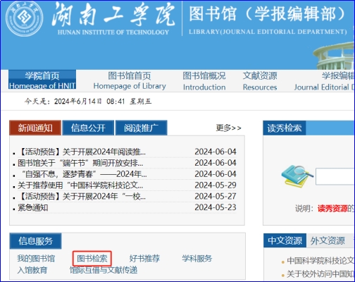 图书馆门户网站“图书检索”栏目
