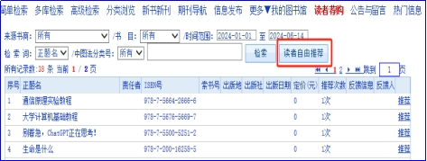 3.荐购图书应符合本馆收藏标准,必须是具有一定学术性、研究性、参考性的著作、教参、年鉴和工具书。以下图书类型一般不予购买:习题集、考试题册、纯娱乐性小说、家庭读物。