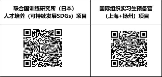 为进一步落实《教育部关于促进普通高校毕业生到国际组织实习工作的通知》,培养具有国际视野的创新型高素质人才,推动国内高校相关专业人才培养体系,我校拟择优推荐学生参加上海赴外国际胜任力人才培养项目:1.联合国训练研究所(日本)可持续发展SDGs项目;2.国际组织实习生预备营(上海+扬州)项目”,组织学生以课程学习加实地参访的形式,为参与者提供更加多元化及更具国际竞争力的教育和实践机会,普适于任何专业年级。现将有关事项通知如下: