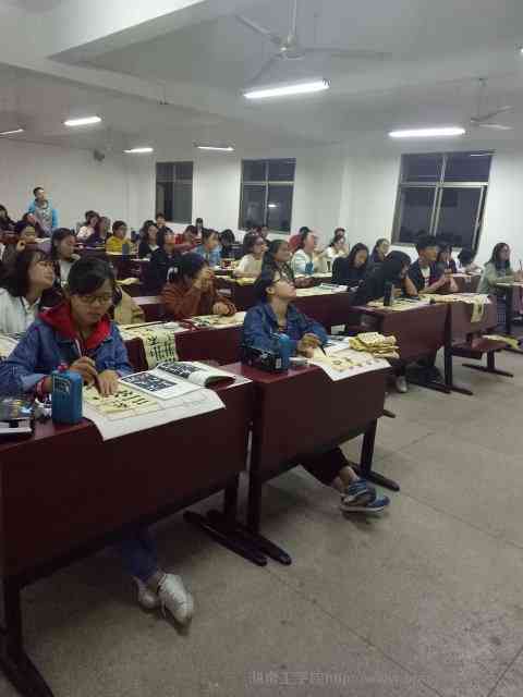 本学期每个周五由协会学术部大三,大二理事对新生进行书法练字培训。此次笔会是本学期的第五次笔会,硬笔由杨斌教学,毛笔由符梁教学,邱玉华和黄孙升进行辅助。会员们态度端正,笔会提前到达相应教室签到,准备好工具等待学长学姐的教学。为迎接春节,增强学员的热情,书画协会此次教学的内容改为学习"福"字,在两个小时的笔会时间里,教学人员教授了五种不同字体的福字,会员刚刚开始学习,学的较为吃力但是在学长学姐的认真教导下慢慢进入状态,笔会过后有很多会员还在教室里面练习。硬笔教室里,会员埋头练习钢笔字。从开始的简单笔画到现在学习结构,之所以在第五节就开始讲授结构是因为会员们坚持努力练字加快了教学进度,当然也离不开杨斌学长的认真教导。在这次笔会中,学社联监察部干事对活动进行了考察,并且表示了对协会活动的认可。