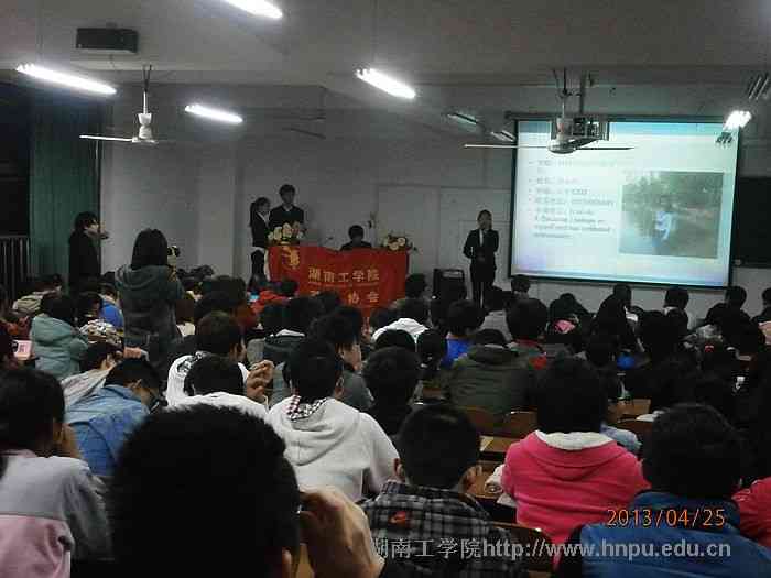 为了从我校选拔优秀人才参加衡阳市第五届三大高校联合英文演讲比赛,2013年5月3日晚,由金沙990线路检测学生社团联合会主办、校英语协会承办的湖工校区总决赛在3栋教学楼312教室如期举行。应邀作为本次比赛的评委有校英语协会指导老师王丹、我校英语老师殷海红、外教Ricky、以及2012年全国大学生英语知识竞赛获奖选手周国武、曹井超和黄双健,此次比赛获得了学府考研、鸿发驾校、巅峰时刻等机构的大力支持。