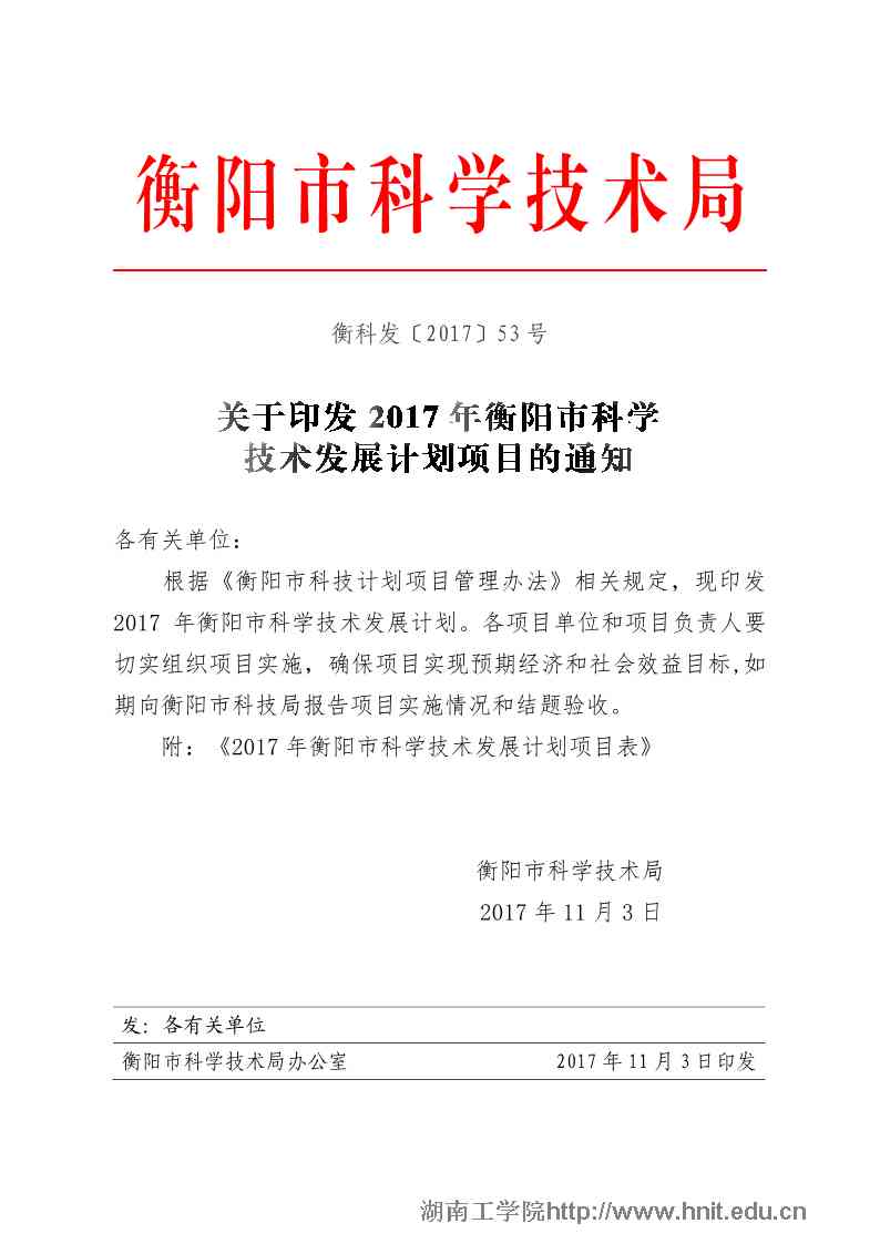 附件:金沙990线路检测2017年衡阳市科学技术发展计划项目表