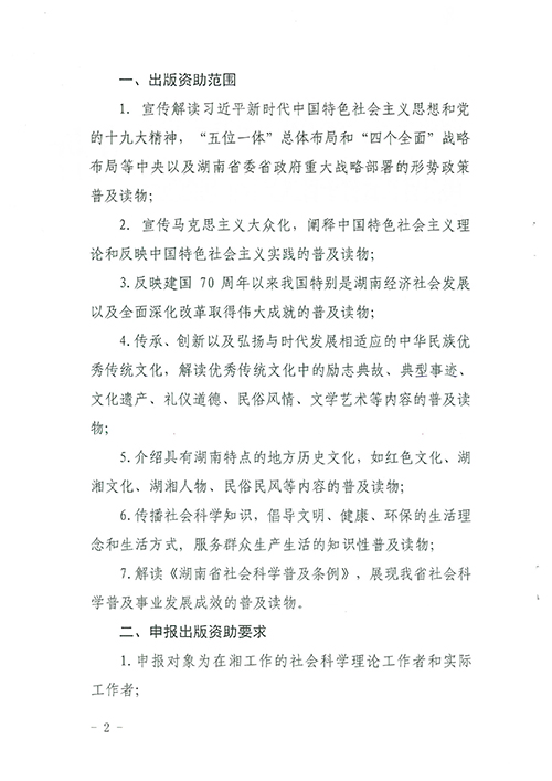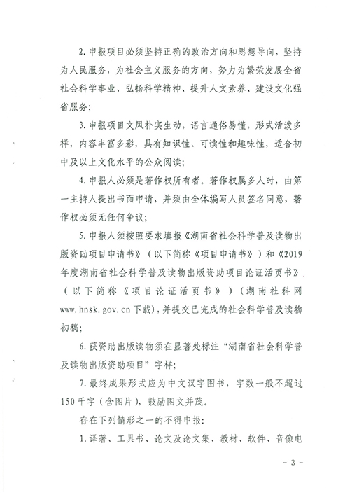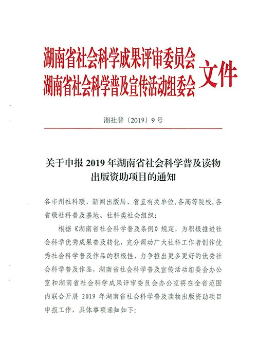 转发:关于申报2019年湖南省社会科学普及读物出版资助项目的通知-金沙990线路检测