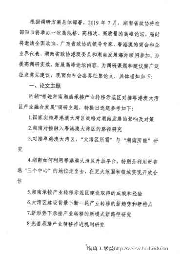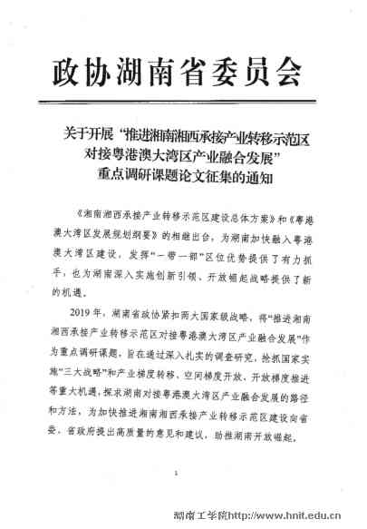 转:关于开展"推进湘南湘西承接产业转移示范区对接粤港澳大湾区产业融合发展"重点调研课题论文征集的通知-金沙990线路检测