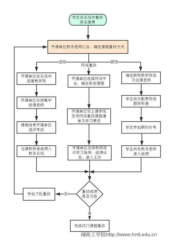 (1)期初补考成绩提交后(每学期第4周前),开课单位根据重修学生名单,确定课程重修方式(单独组班、跟班或选择网络课程重修)。