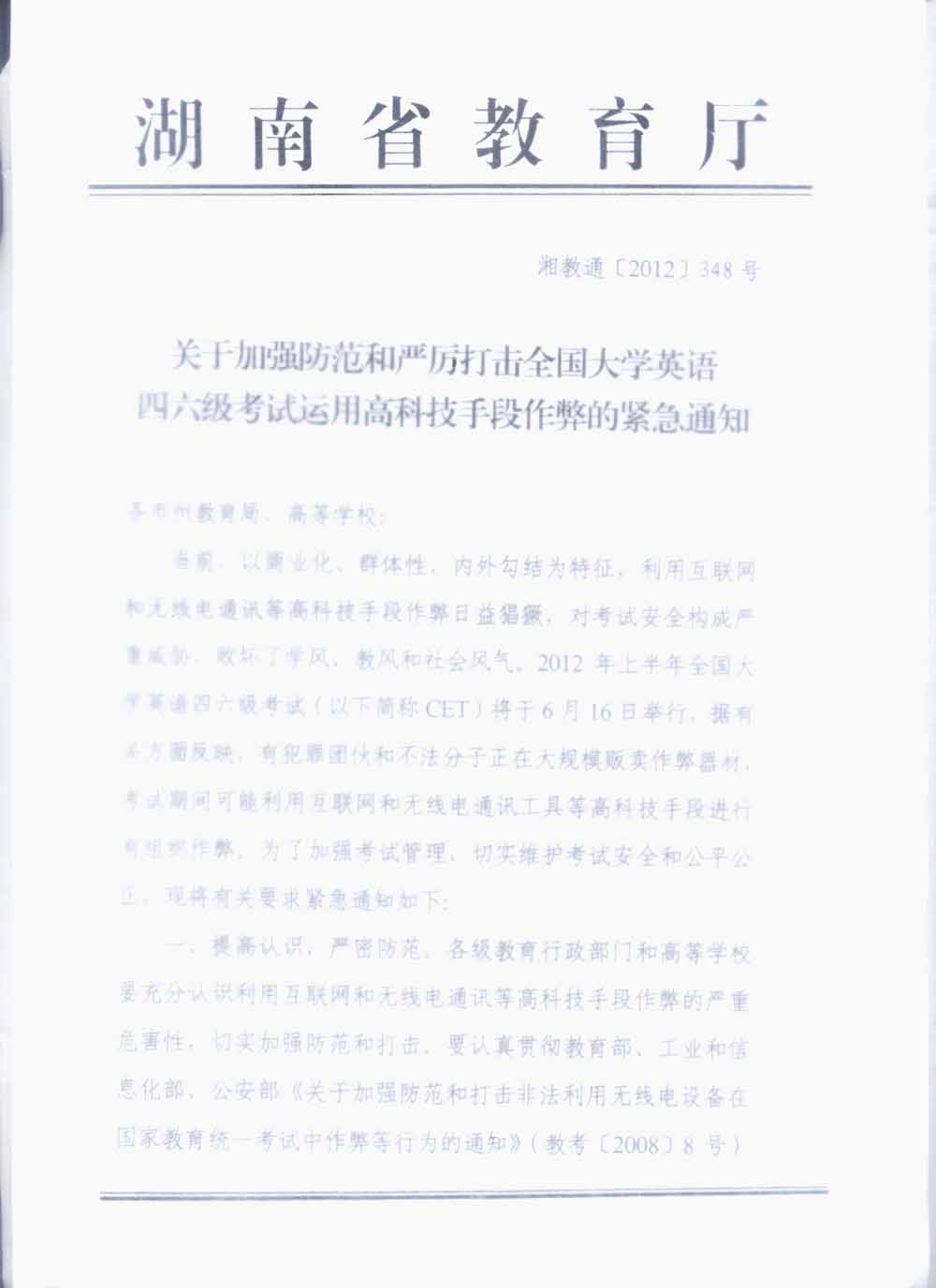 关于防范打击四六级考试高科技作弊的通知-金沙990线路检测