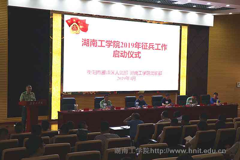 4月25日下午,我校在500人多功能报告厅举行2019年大学生征兵工作启动仪式,全面部署今年学校征兵工作,并为“优秀退役大学生”颁奖,党委书记谢国保出席仪式并讲话,党委委员、副校长曹执令,衡阳市雁峰区人武部部长海向阳、政治委员龙元河和学校征兵工作领导小组成员共同参加,仪式由武装部部长刘仁能主持。