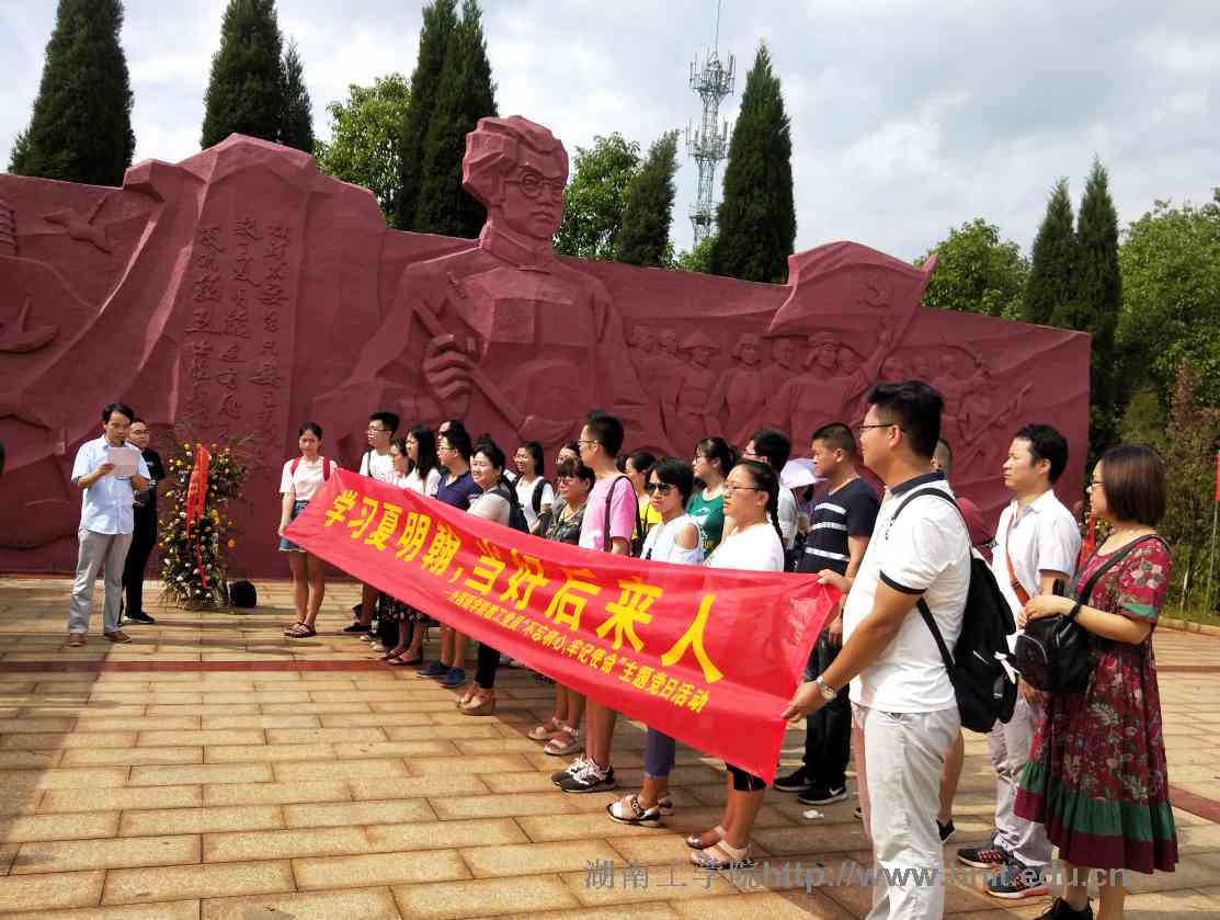 625-71日,在中国共产党建党97周年,夏明翰烈士牺牲90年之际,为庆祝中国共产党成立 97 周年,深入学习习近平新时代中国特色社会主义思想和党的十九大精神,外国语学院党委举行“庆七一?不忘初心?牢记使命”系列主题党日活动,学习十九大精神,探寻英烈足迹,感受夏明翰精神。