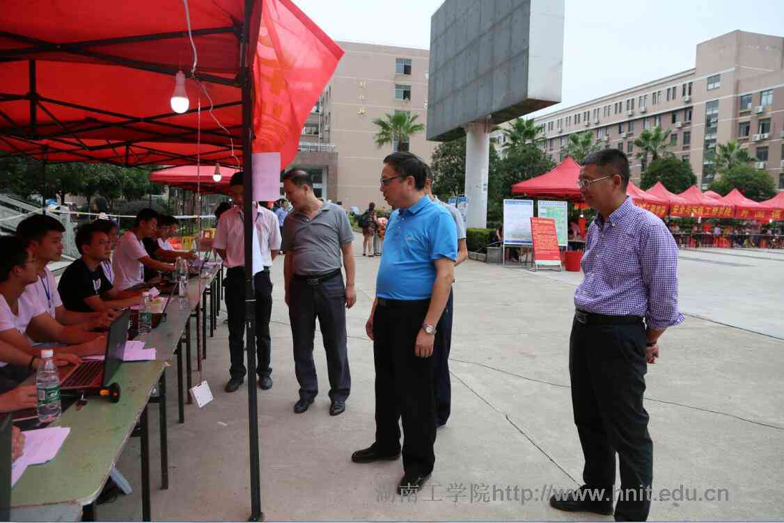 913日下午,党委书记谢国保、校长罗建华、副校长刘俊学和党委委员、党政办主任黄红卫在招生就业处、学生处、宣传部有关人员的陪同下来到卓越广场前坪看望慰问了迎新工作人员和提前报到的新生及其家长,对迎新工作人员的辛苦工作表示感谢。