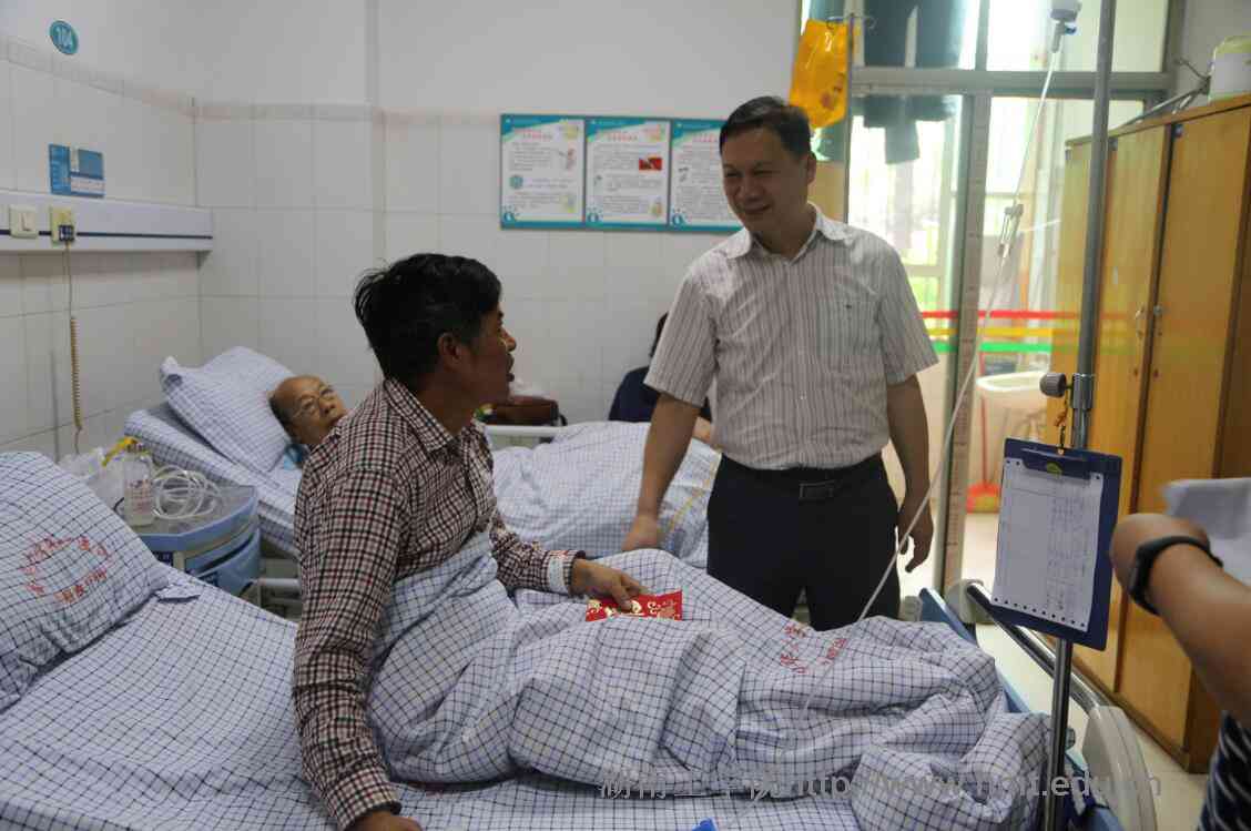 在南华大学附属第一医院,罗建华与正在接受治疗的老党员进行了亲切交谈,详细询问了老党员的身体生活状况,叮嘱他安心治疗,争取早日康复,并祝他节日快乐。