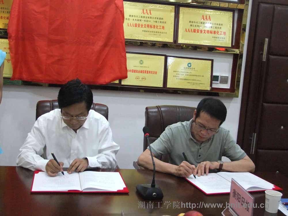 8月20日,副校长陈世平,招生与就业指导处副处长陆琼、建工学院党总支书记彭志忠等一行赴湖南华兴工程建设有限公司签订毕业生就业基地建设协议并举行了揭牌仪式。
