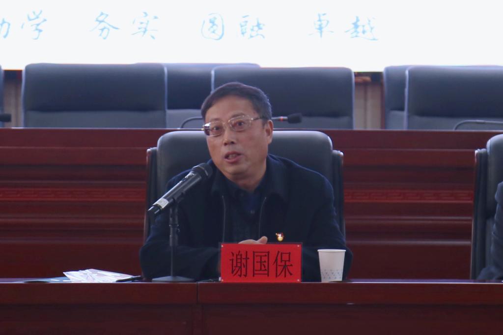 “让我们群策群力,开拓创新,以无限的热忱和果敢的行动承担起这份崇高的历史使命,携手为打好学校‘双一流’建设、硕士点建设和审核评估三大攻坚战不懈奋斗!”校党委书记谢国保致辞。