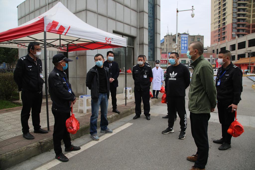 ▲ 慰问校园南门安保人员、了解防疫情况