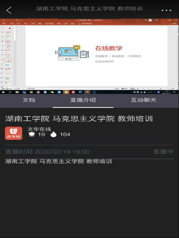 在教学方案拟定之后,马克思主义学院第一时间组织了全体任课教师的在线集体备课。首先邀请“优学院”网络教学平台技术人员指导老师对平台使用、教学工具使用进行培训,例如:如何创建课程、关联已有课件、班级管理、建设题库和资料库、课程管理、成绩管理、远程直播课等。其次,由慕课经验丰富的老师耐心向大家介绍网课制作和网课运行的技巧和经验,鼓励大家迎难而上。再次,积极了解部分老师的实际困难,及时调整,鼓励大家发扬集体主义精神,实行教研室集体备课制度,坚定备好网课、开好网课、上好网课的坚定信心。