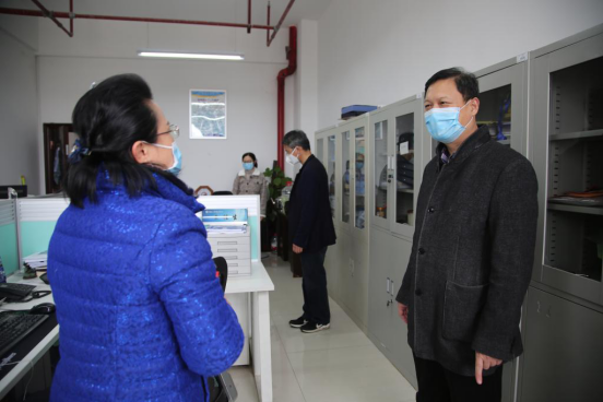3月5日下午,校党委书记谢国保,校长罗建华,校党委副书记张平,党委委员、组织部部长黄红卫,党政办公室主任熊新华再次深入一线检查指导疫情防控工作,并慰问奋战在疫情防控一线及在润泽公寓自我隔离的教职员工。