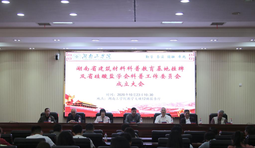 10月23日上午,湖南省硅酸盐学会科普工作委员会成立大会在我校教学大楼12楼报告厅隆重召开,省硅酸盐学会理事长陈同力、副理事长李志成、二级调研员黎玉美、秘书长朱良文出席会议,校党委副书记张平、副校长崔晓利出席大会并讲话,科技处处长谭德凡主持会议。