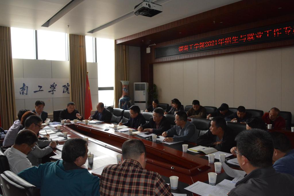 为贯彻落实湖南省新高考改革方案和教育部、省教育厅关于做好2021届高校毕业生就业工作的系列通知及视频会议精神,明确新形势下招生、就业工作目标,凝聚力量,进一步推进招生与就业工作创新开展,3月31日下午,学校在教学大楼12楼会议室召开2021年招生与就业工作专题会议。学校党委书记宋克慧、校长曹执令、副校长刘升学出席会议并讲话,纪委书记张治春、校党委委员宣传部长袁勤、校属各相关职能部门负责人、各二级学院院长、党委书记参加会议,副校长刘升学主持会议。