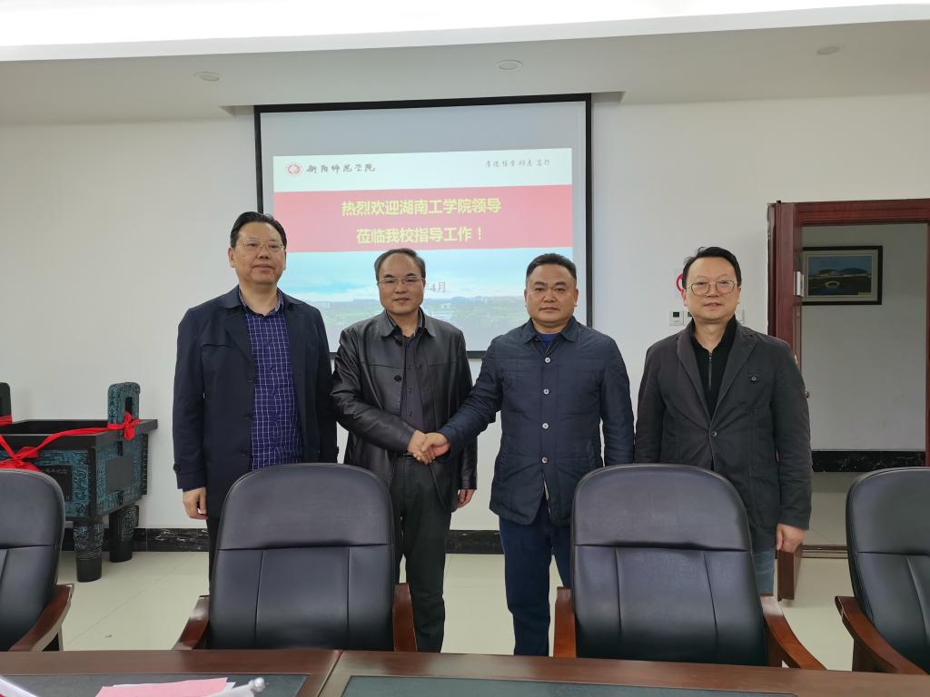 4月16日下午,副校长何建雄带领学科建设中心主任王小兵等一行四人,前往衡阳师范学院学习调研。