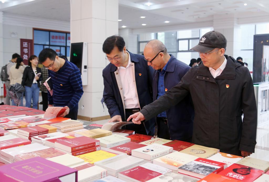 为庆祝中国共产党百年华诞,5月18日上午,由马克思主义学院和图书馆共同举办的“传承红色基因、跨‘阅’百年征程”党史学习教育专题书展在图书馆大厅启动。校党委书记宋克慧、党委副书记张平、副校长柳星,团委、马克思主义学院、图书馆负责人和师生代表200余人参加了启动仪式。