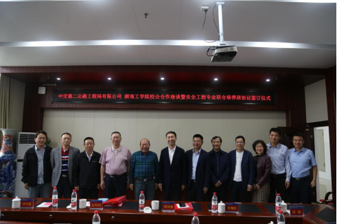 教学质量监控与评估中心主任彭志忠、招生与就业处处长彭立新、继续教育学院院长杨国辉,中交二公局人力资源部副总经理柴兆红、中交二公局安全管理部副总经理尉鹏、中交二公局四公司党委副书记阮明和、中交二公局隧道公司安全管理部经理兼校友代表刘兴建、中交二公局各分公司人事部经理出席签订仪式。(安全与环境工程学院)