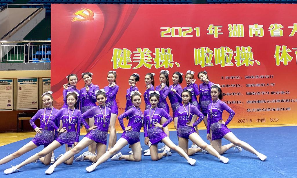 6月17日,由湖南省教育厅、湖南省体育局主办,湖南师范大学承办,湖南省学生体育协会协办的2021年湖南省大学生健美操、啦啦操、体育舞蹈比赛在湖南师范大学拉开序幕。经过两天的激烈角逐,我校代表队街舞啦啦操与花球啦啦操两项集体项目均获得第三名,同时获得学院组团体总分第五名的成绩。