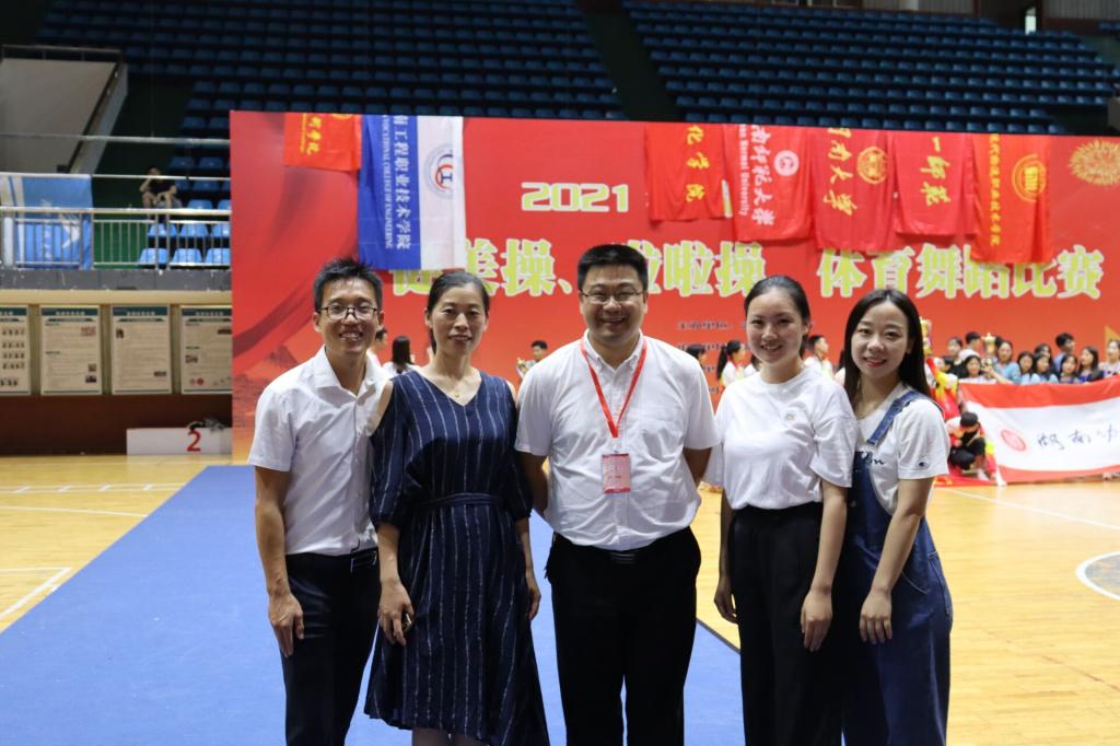 我校健美操队由体育教学部党总支书记余忠担任领队,邓莉萍、张宏达两位老师担任教练。每一个项目从服装、音乐到动作难度无不经过老师的巧心构思,体现了我校健美操校队独特的风格,展现了大学生青春激昂、积极拼搏的精神面貌。队员们在比赛中发挥了较高水平,赛出了风格,赛出了特色,为学校争得了荣誉。(体育教学部)