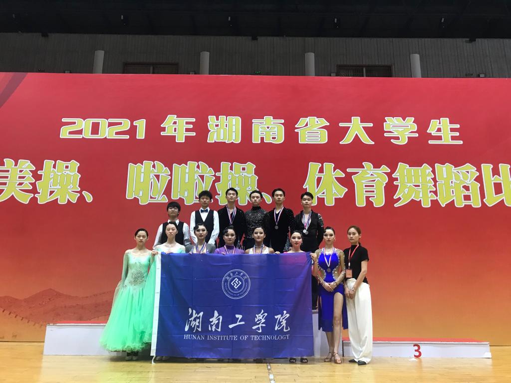 近日,我校体育舞蹈队参加了由湖南省教育厅、湖南省体育局主办,湖南师范大学承办,湖南省学生体育协会协办的2021年湖南省大学生体育舞蹈比赛。经过两天的激烈角逐,我校体育舞蹈代表队获得2个第二名、8个第三名、3个第四名和1个第五名的好成绩。