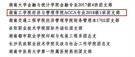 会计学专业ACCA1801班团支部自成立以来以“智慧团建”系统为依托,强化思想政治引领,积极为党组织选拔储备军人才,组织ACCA考研考公和JHC全国就业力大比拼等学习经验交流会,四级通过率达到94.44%,ACCA F阶段部分课程全球统考通过率超过80%,其中F3、F9通过率超过92%。