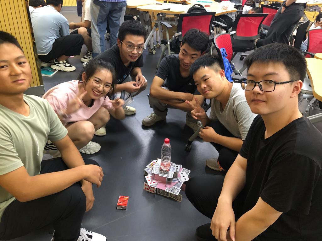 本次课的主题为《结构的力与美——学习小组的破冰之旅》,李理首先进行课程导学,介绍混合式教学的学习模式,鼓励同学们自主学习、合作学习及碎片化学习。其次,李理介绍了材料力学课程的定位与目标、学习内容、学习路径、能力目标、教学团队等,突出了本课程的重要性。最后一个环节是“分组搭建扑克牌承重结构”的小游戏,借此让学生了解结构的力与美的融合。