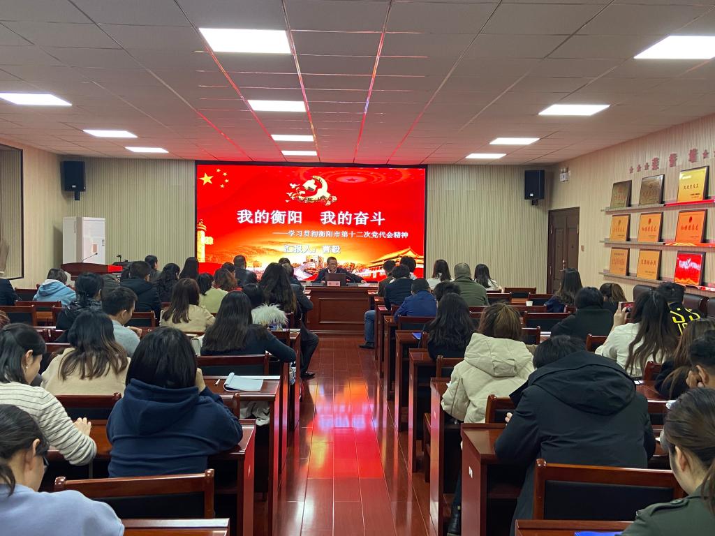 曹毅以《我的衡阳 我的奋斗——学习贯彻衡阳市第十二次党代会精神》为主题,围绕市第十二次党代会提出的“加快建成名副其实的国家区域重点城市和省域副中心城市”奋斗目标,分别从“过去五年干了什么”、“未来五年要干什么”、“这样布局是为什么”、“实现目标要怎么做”四个方面详细解读了党代会报告精神。他要求全体学工干部把贯彻落实衡阳市第十二次党代会精神当成一项重要的政治任务,以服务地方经济社会发展为己任,积极投身现代化建设,作衡阳建设的参与者、衡阳发展的奋斗者、衡阳形象的维护者。
