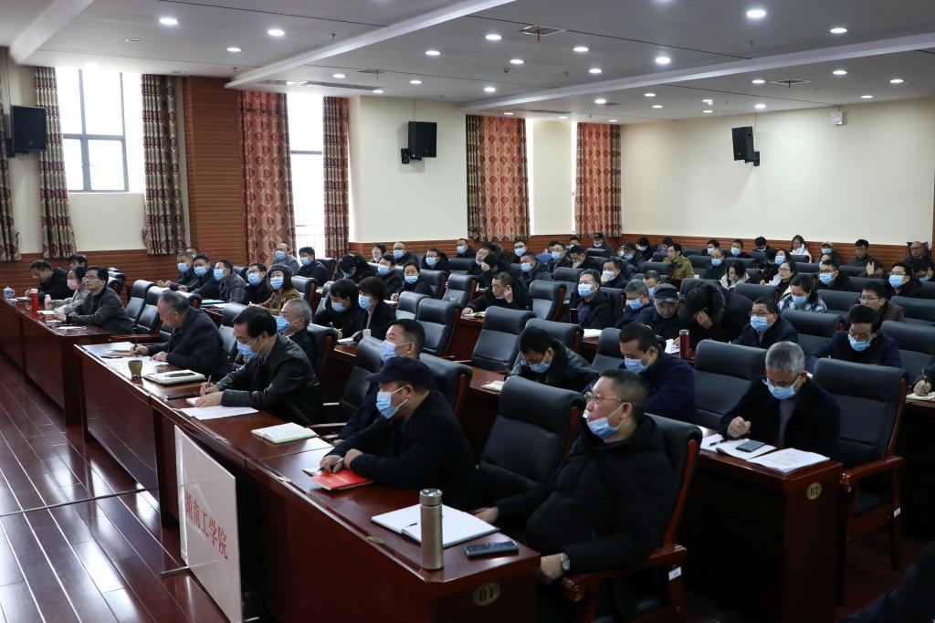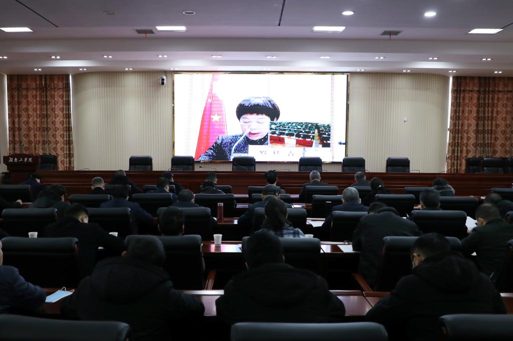 1月13日上午,全省高校暨委厅机关党史学习教育总结会议以视频形式在长沙召开。省委教育工作领导小组秘书组组长、省委教育工委分管日常工作的副书记、省教育厅党组书记、厅长夏智伦出席会议并讲话。省委教育工委副书记、省教育厅党组成员王建华主持会议。省委教育工委委员、省教育厅党组成员罗桂香传达中央和全省党史学习教育总结会议精神。我校全体校领导和处级干部在教学大楼12楼报告厅参加视频会分会场。