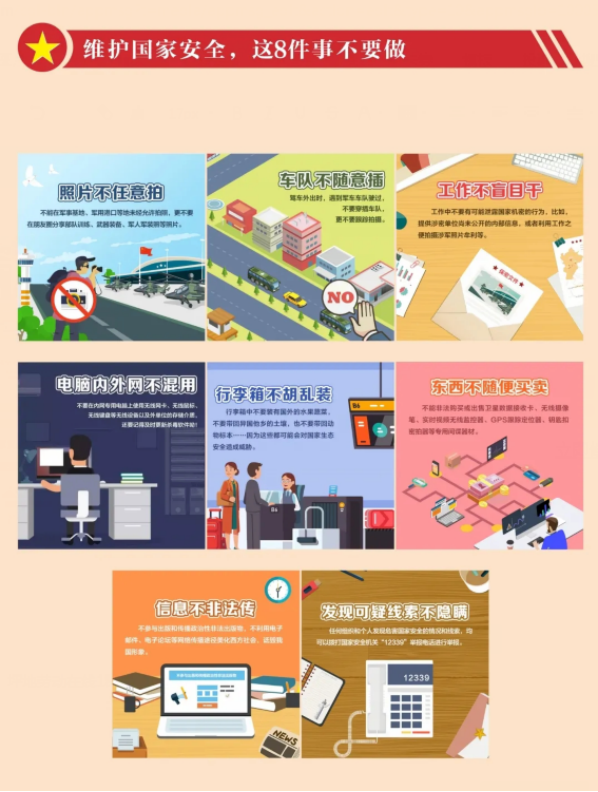 5. 遇到可能涉及国家安全的各类事件时,及时拨打举报电话12339。