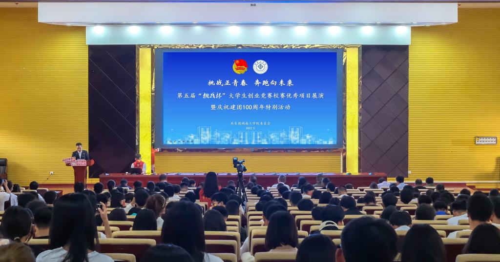 5月3日下午4点,我校500人报告厅座无虚席,庆祝建团百年宣传片《共青春》主题曲《有我》的超燃旋律穿越时光,追忆中国青年百年奋斗与峥嵘,会场处处洋溢着青春的气息。我校“挑战正青春 奔跑向未来”第五届“挑战杯”大学生创业竞赛校赛优秀项目展演暨庆祝建团百年特别活动在这里举行。校党委委员、副校长刘龙昌出席活动并寄语青年,活动由校团委书记贺令亚主持。