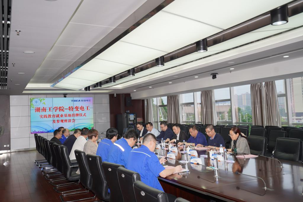 5月11日,校长曹执令带队赴特变电工洽谈共建产业学院,探讨校企产学研合作及开展“访企拓岗促就业”专项行动,对接企业人才培养需求。特变电工衡阳变压器有限公司总经理种衍民、副总经理龙腾、副总工程师谭黎军、人力资源总监杨新林、双碳研发中心主任苏中焕、科技管理部长刘小鹏等接待了曹执令一行。