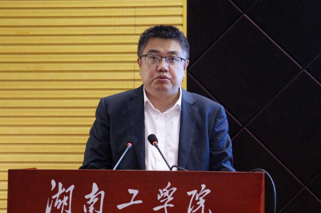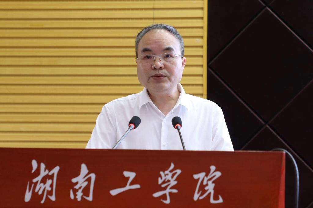 曹执令在启动仪式上致辞,他代表全校师生对科技活动周的隆重举办表示热烈祝贺,从学校的基本情况、办学定位等方面简要介绍了我校办学发展情况。他表示,近年来,学校不断深化内涵建设,提高办学水平;不断深化教育教学改革,提高人才培养质量;不断深化校企校地合作,服务地方经济社会发展,通过对接湖南、衡阳优势产业链,积极服务湖南“三高四新”战略、衡阳“三强一化”建设。同时学校积极推进科普工作,充分利用衡阳市内工业遗产、红色资源等向学生科普衡阳工业,学校“金沙990线路检测工业文化普及基地”被确定为湖南省首个工业文化科普基地。