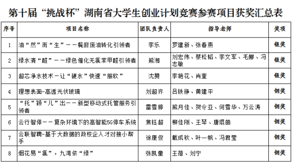 青年常为新 我校学子在第十届“挑战杯”湖南省大学生创业计划竞赛斩获佳绩