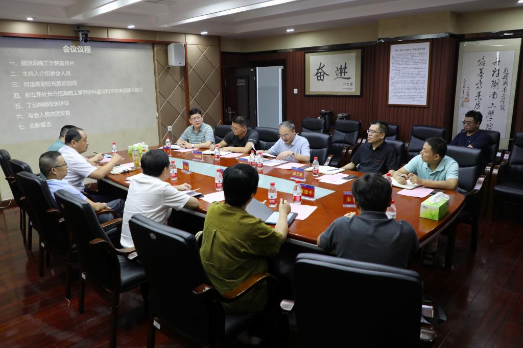7月20日上午,湖北工程学院副校长丁远坤一行来访我校,双方在教学大楼11楼会议室展开交流讨论。学校党委委员、副校长何建雄出席会议,学科建设与发展规划处处长彭立新主持会议。