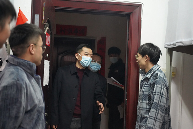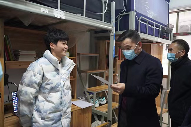 为切实做好疫情防控新形势下的学生管理工作,及时了解学生的思想动态、心理状况及学生宿舍安全卫生等情况,12月6日下午,校长曹执令深入走访安工学院学生宿舍,悉心听取学生的所思所盼所想,回应学生诉求,送上关心和问候。安全与管理工程学院党委书记陈健、副书记黄宏格、学工办主任傅娜、全体辅导员随同走访。