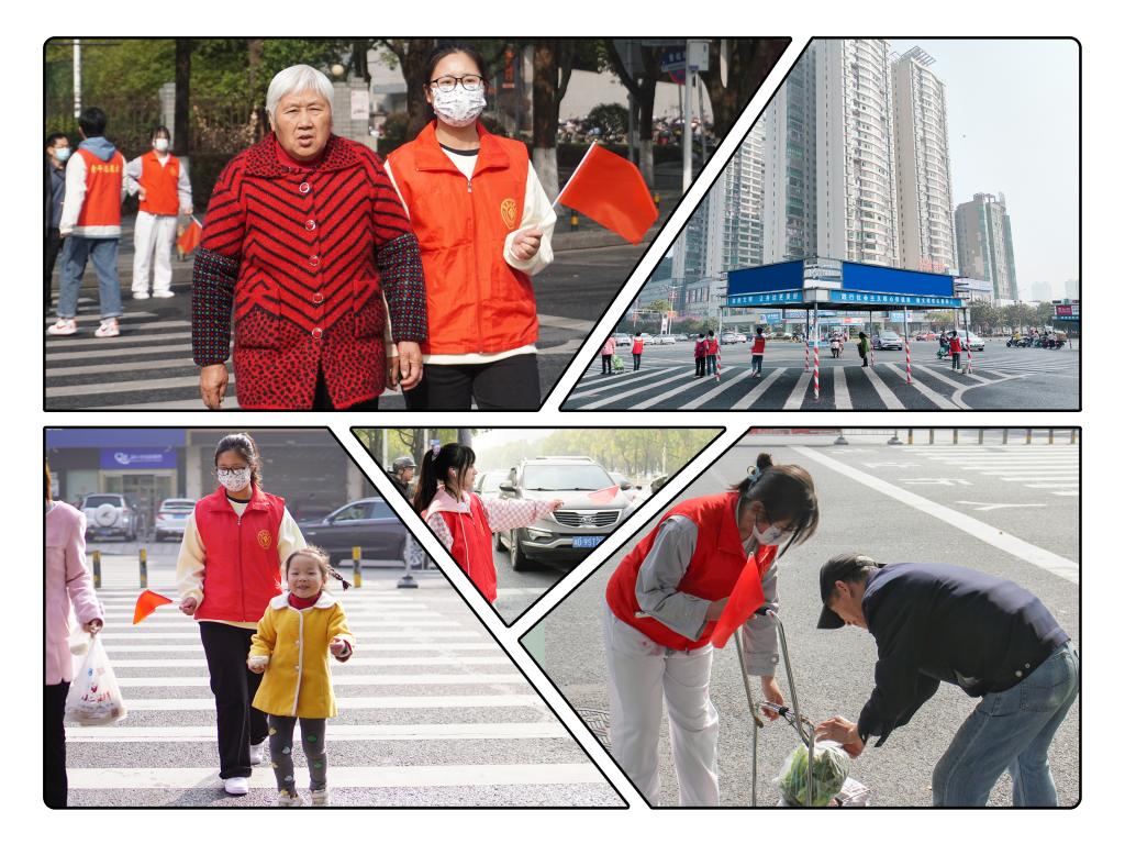 在交通路口,“湖小青”牵手“衡阳群众”志愿服务工作组开展交通文明劝导,助力全国文明城市创建工作。“请注意安全”“请不要闯红灯”“谢谢配合”,志愿者们在衡阳市高新区步步高路口,身穿红色志愿者马甲,手持小红旗、佩戴口哨,提醒行人遵守道路交通法规,不闯红灯,规范停放好自带车辆。遇到老人、小孩过斑马线时,志愿者们上前帮扶;面对交通违规行为,志愿者们上前劝说,用自己的行为带动身边的人,把文明风尚传播到城市的每一个角落。