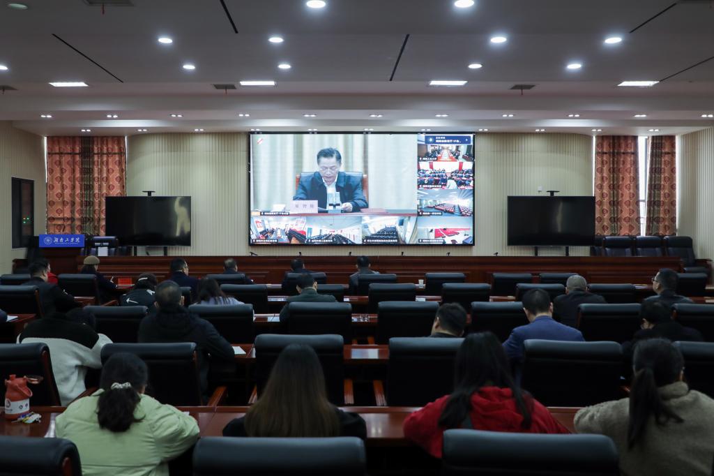 3月3日下午,我校在综合教学楼船山报告厅组织防控办全体成员,各二级学院党委副书记、全体辅导员收看省教育厅召开2023年全省教育系统疫情防控工作视频会议。校长曹执令、副校长黄红卫出席会议。