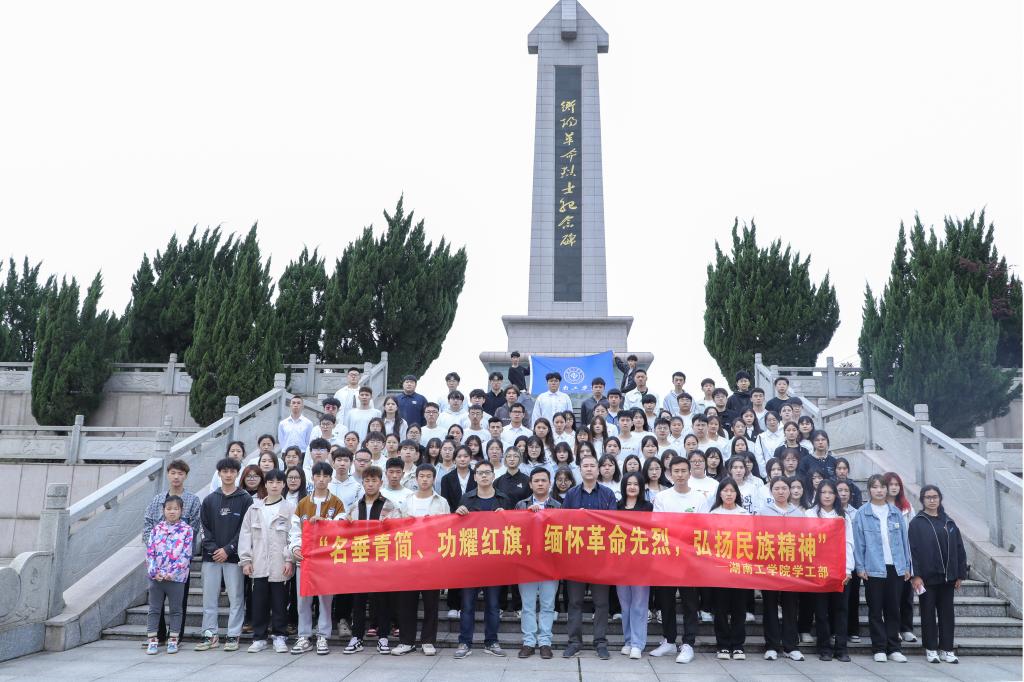 在衡阳市烈士陵园,全体师生来到烈士纪念塔前脱帽肃立默哀三分钟,向先烈敬献鲜花。学生党员孔洋军回忆自己的入党初心,讲述了自己的入党故事。全体党员重温入党誓词并参观了烈士事迹陈列馆。