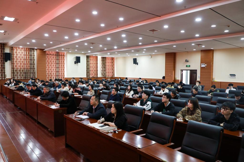 组织部、党校、教务处(教师发展中心)、教学质量监控与评估办公室、创新创业教育中心、现代工程技术实践教学部(材料分析检测中心)、少数民族学生预科教育部、设计艺术学院、材料科学与工程学院教职工以及学生代表聆听了宣讲。(文/黄宝乐 图/刘歆昱 审稿人/一审:李琪 二审:彭国柱 三审:肖中云)