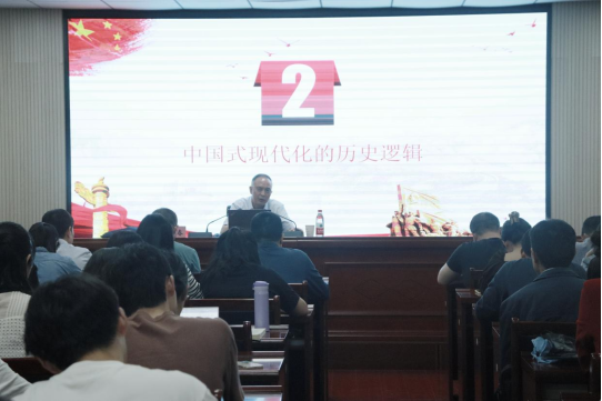 张治春以“正确理解和大力推进中国式现代化 ”为题,从“西方现代化进程中的文明悖谬”“中国式现代化的历史逻辑”“中国式现代化是什么”“中国式现代化为什么好”“中国式现代化道路怎么走”“中国式现代化的湖南篇章怎么干”、“为现代化建设提供人才支撑”七个方面,对党的二十大精神进行了精彩的阐述和深刻的解读。