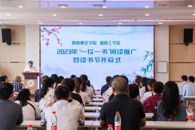 4月20日上午,我校与衡阳师范学院联合举办的2023年“一校一书”阅读推广暨读书节活动开幕式在衡阳师范学院东校区图书馆隆重举行。我校副校长柳星、衡阳师范学院副校长李玲玲出席开幕式,两校图书馆、宣传部、教务处、团委、学工部相关负责人、衡阳师范学院驻村帮扶工作队队长、祁东县马杜村八一小学师生代表、两校师生代表参加开幕式。开幕式由衡阳师范学院图书与档案馆馆长李振中主持。